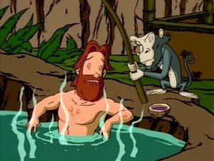 Slick doesn't try to sell them anything and even bad-mouths his own merchandise and the two find Van Pelt freeing a trapped baby deer instead of killing it. When a tree bends to give them passage over a gorge, Judy starts to think something's wrong with Jumanji. They find Alan in a hot tub served by some chimps and he reveals that in Jumanji time they've been gone for weeks and he started to wonder if they'd ever come back. Alan explains that the changes happened gradually with the animals starting to help him out and Van Pelt even saving Alan from one of his own traps. Alan's now even friends with Ibsen who changed his ways too, but suddenly during the explanation, the Manjis attack them with spears leaving them confused as Alan was feasting with them just days before.